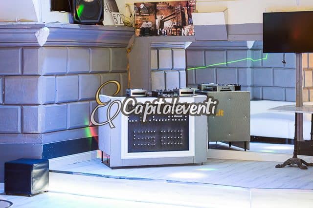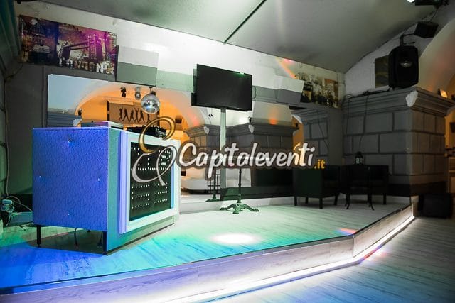 Uno dei punti di forza del locale è sicuramente il palco, zona nevralgica di tutta la struttura. Volendone sfruttare le potenzialità in chiave festa aziendale, è possibile utilizzare lo spazio per un momento dedicato ad interventi con microfono, presentazioni, conferenze o quant’altro. Il tutto può essere ovviamente coadiuvato da proiezione video e, naturalmente, da servizio audio in diffusione in tutta la struttura.