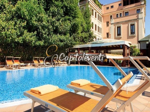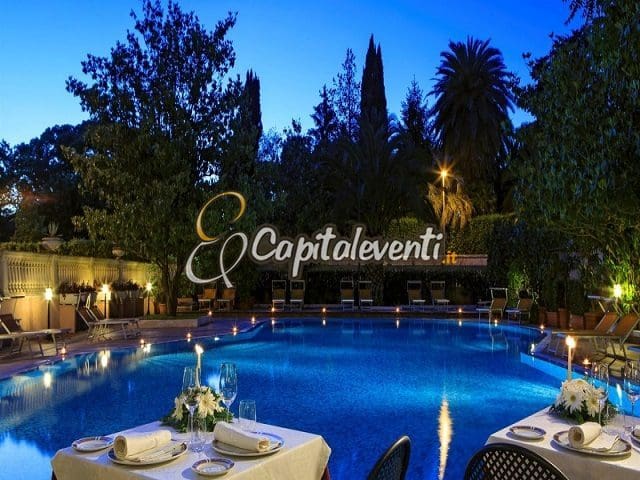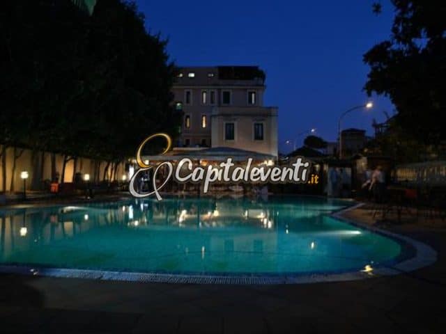 L’ampia piscina, altro punto di forza dell’hotel, sarà invece accessibile sia per organizzare la cena dell’evento all’esterno, ma anche per dedicarvi un momento specifico della serata, magari con un aperitivo o semplicemente per l’accoglienza degli ospiti e i “raduni conviviali” che si creeranno spontaneamente nel corso della serata subito dopo la cena.